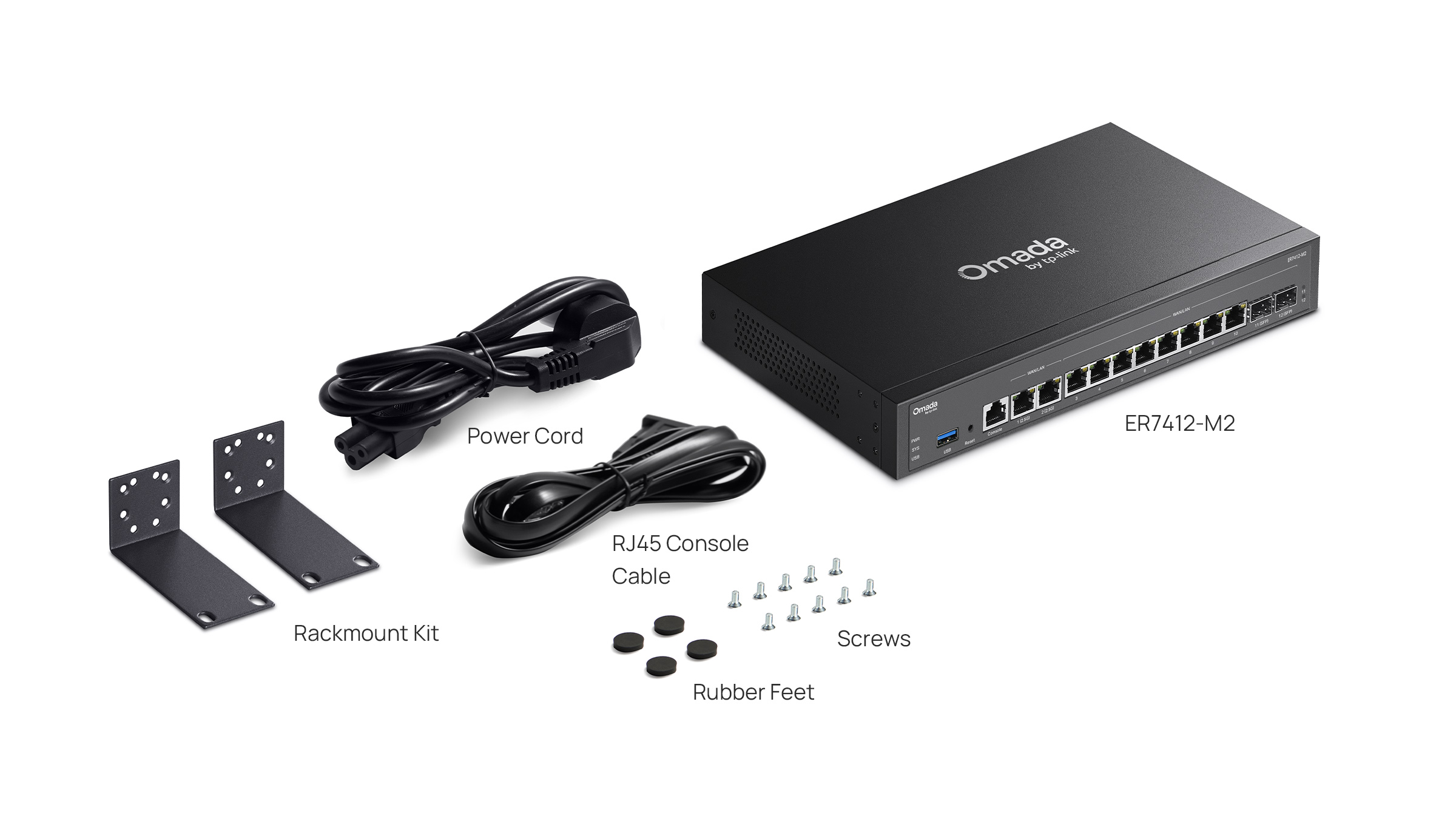 | Package Content | • ER7412-M2• Power Cord• Quick Installation Guide• Rackmount Kit• RJ45 Console Cord |