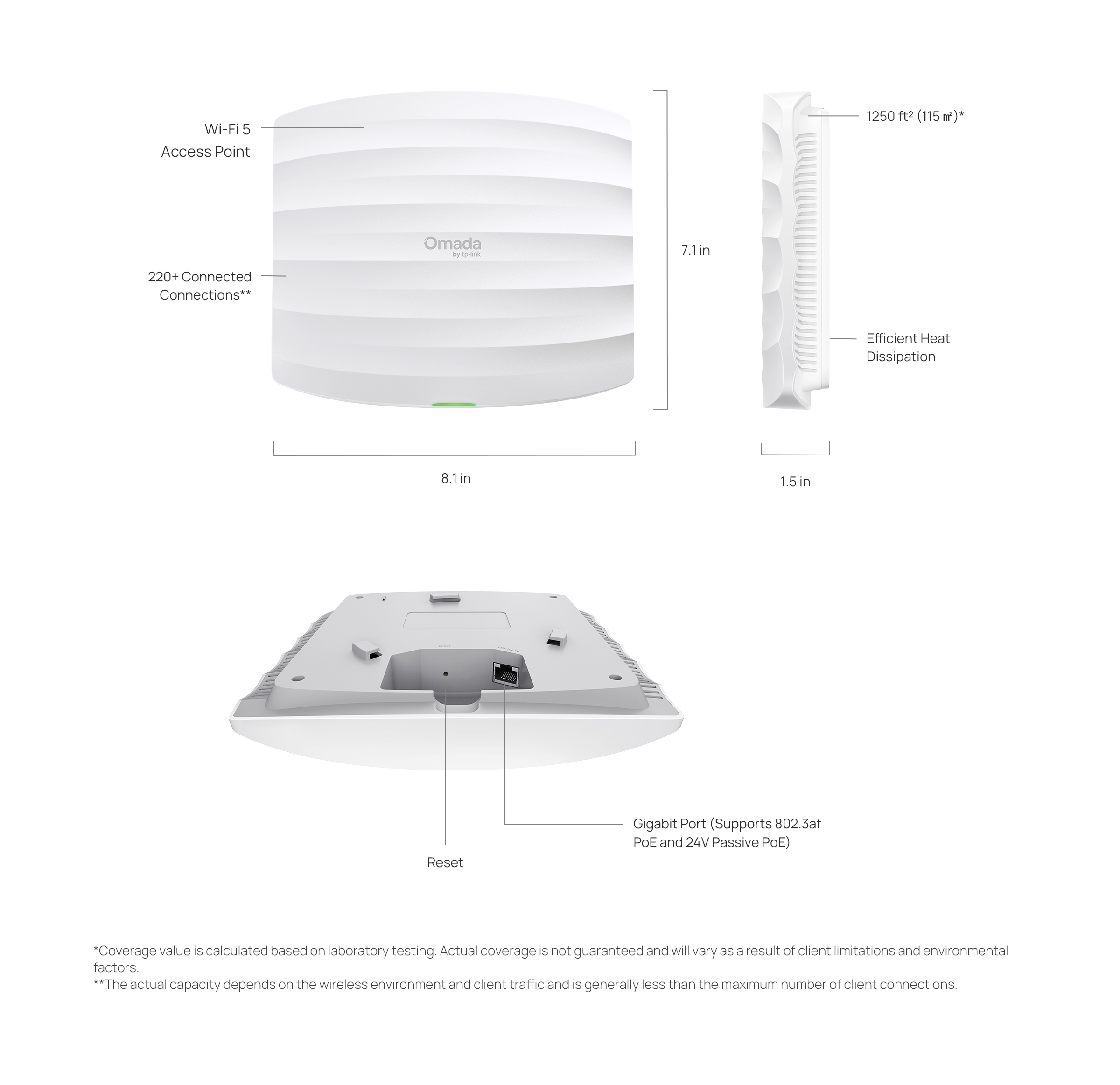 - Flexible Deployment and Easy Setup: Supports both 802.3af PoE and 24V Passive PoE for flexible installation. Omada SDN for one-click setup.