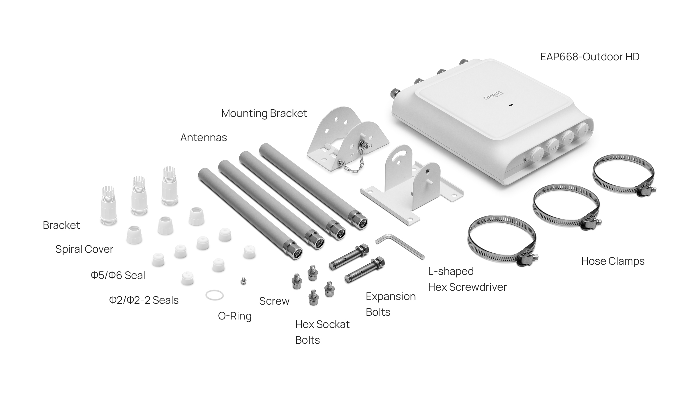 | Package Content | • EAP668-Outdoor HD• 4× External Dual-Band Omni Antennas• Installation Guide• Mounting Kit• Waterproof Kit |