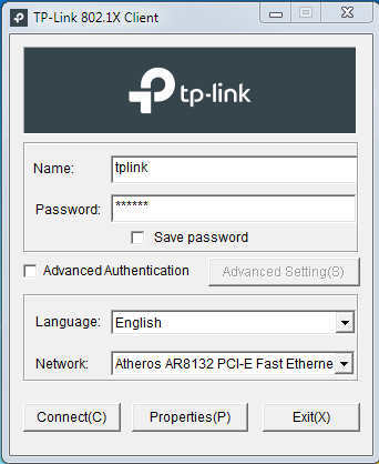 1)On the computer to be authorized, download the TP-Link 802.1X Client Software installation file from https://www.tp-link.com/en/download-center.html Run the file and follow the wizard to install the 802.1X client software. After completing installation, double click the icon to run the TP-Link 802.1X Client Software. The following screen will appear.