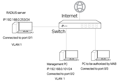 MAB (MAC Authentication Bypass) uses the MAC address of a device to determine whether the client can get access to the network. After checking the MAC addresses of the clients that you want to access the network, add these MAC addresses into the database of the RADIUS server. With MAB enabled on th port, the switch will learn the MAC address of the device automatically and send the authentication server a RADIUS access request frame with the client’s MAC address as the username and password. If the authorization succeeds, the RADIUS server grants the client access to the network. Thus devices can be authenticated without any client software installed. And MAB can be used to authenticate devices without 802.1X capability like IP phones.