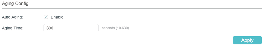Enable Auto Aging, then the switch automatically updates the dynamic address table with the aging mechanism. By default, it is enabled.