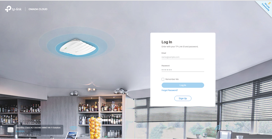 1 ) Open a web browser and go to the Omada Cloud: https://omada.tplinkcloud.com. In the Log In page, enter your TP-Link ID and password. Click Log In.