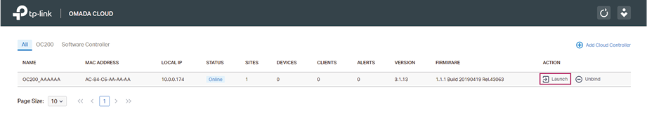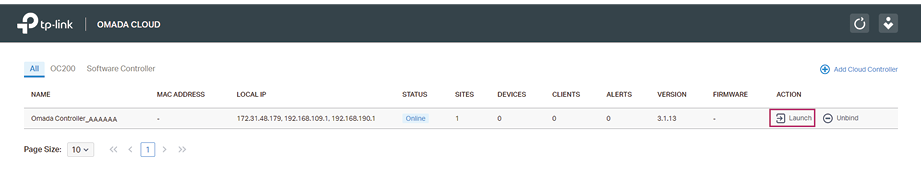 On the Omada Cloud management page, click to open the controller management page.
