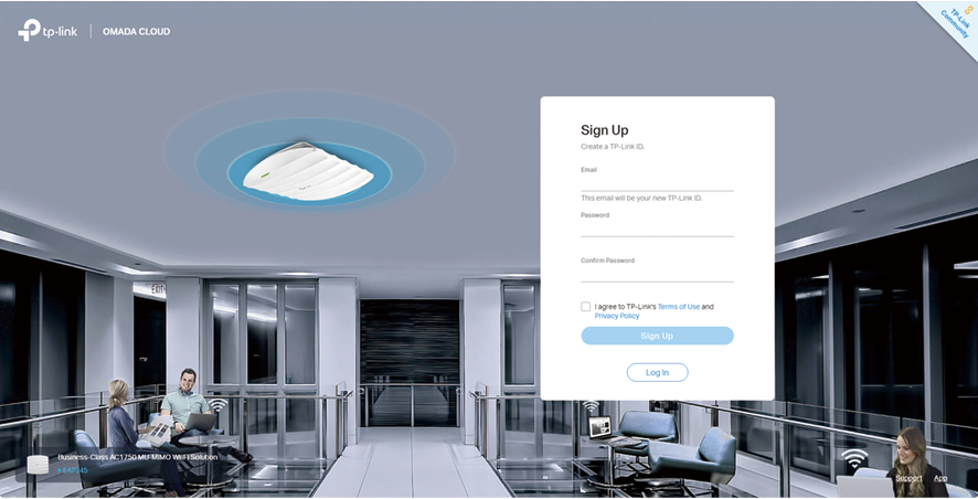 2 ) Go to the Account page, click Login, and click Sign Up to load the following page. Enter your email address and a password. This email address will be your TP-Link ID. Check the box next to I agree to TP-Link's Term of Use and Privacy Policy, if you agree to them. Click Sign Up. An activation email will be sent to your email address.