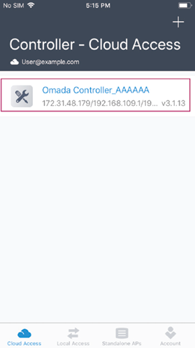 2 ) Go to the Cloud Access page on the Omada APP.