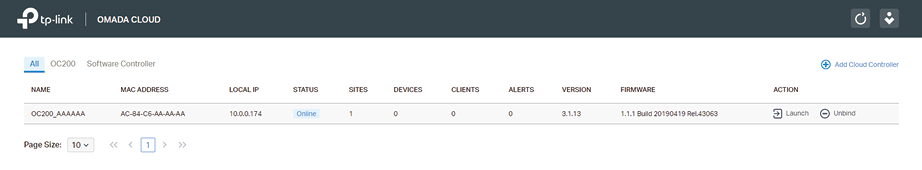 Using an Omada Cloud Controller as the Controller