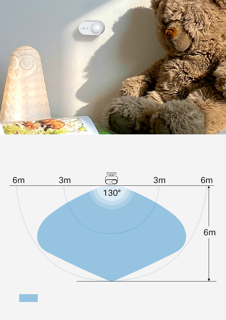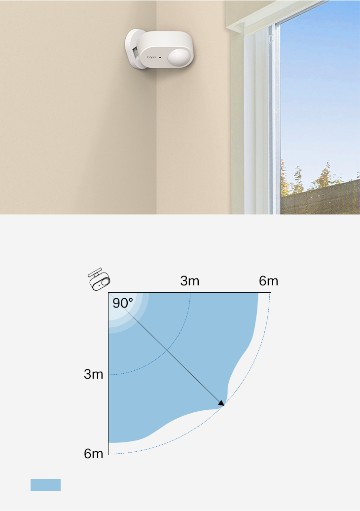 ‡ 6 m est la distance de déclenchement maximale lorsque l'on fait face directement au Tapo T150.