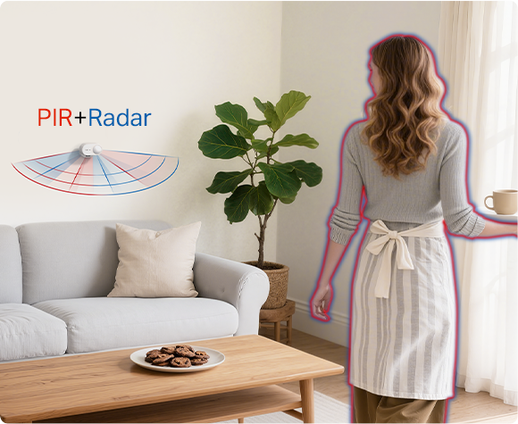 Uses smart radar technology to learn and adapt to its environment, automatically ignoring static objects like furniture. The sensor focuses only on human presence, ensuring highly accurate and reliable detection.