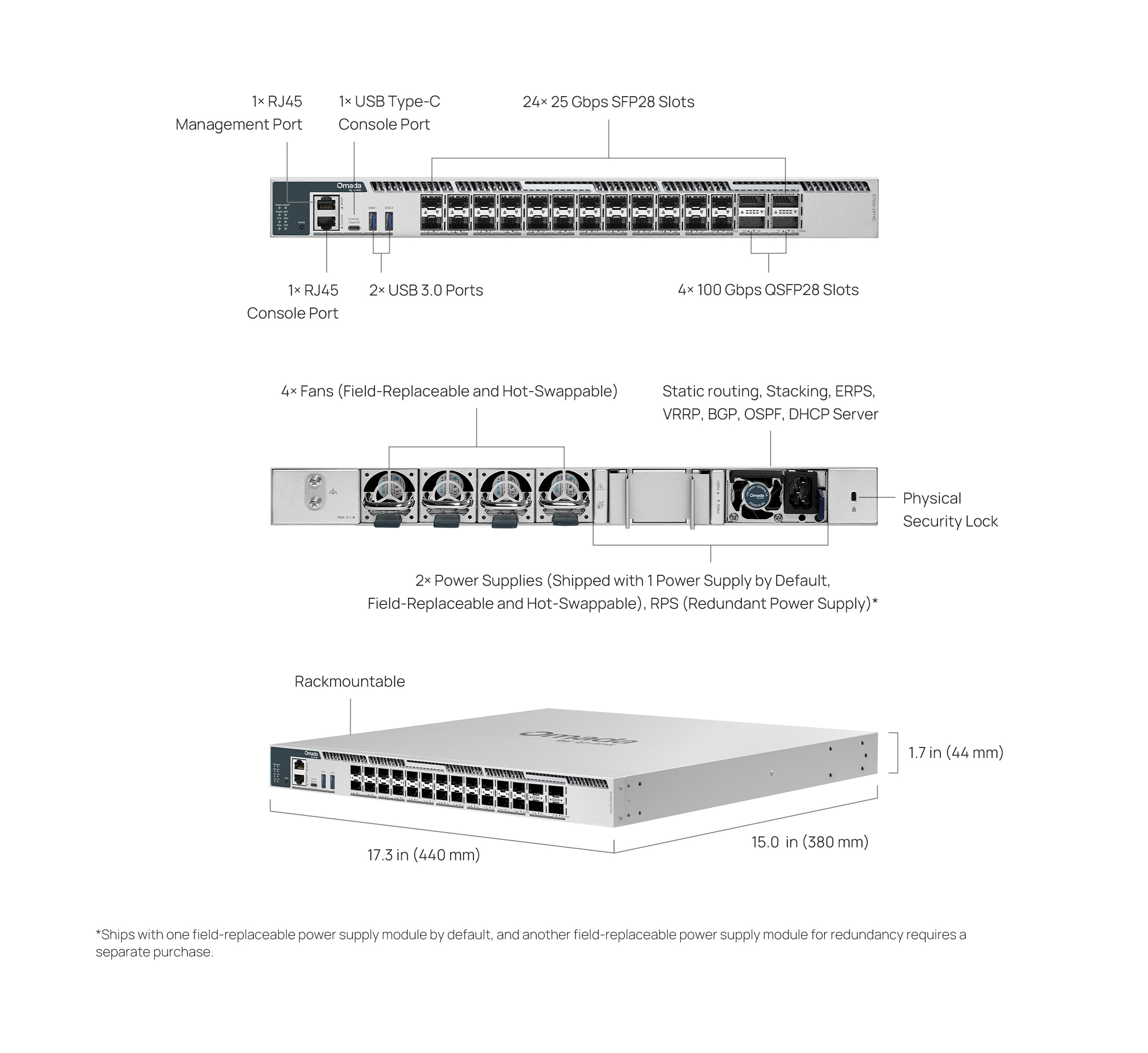 本製品はアグリゲーション層およびコア層での使用に最適な高性能L3マネージスイッチで、L3ルーティング機能・高速25Gbps有線速度・物理スタック機能・冗長電源モジュールに対応しています。25G SFP28スロット×24 + 100G QSFP28スロット×4・物理スタッキング機能・集中管理機能を備え、強力なセキュリティ・手軽な操作&メンテナンス・豊富な管理機能によって企業・キャンパス・ISP向けに信頼性の高いネットワークソリューションを提供します。