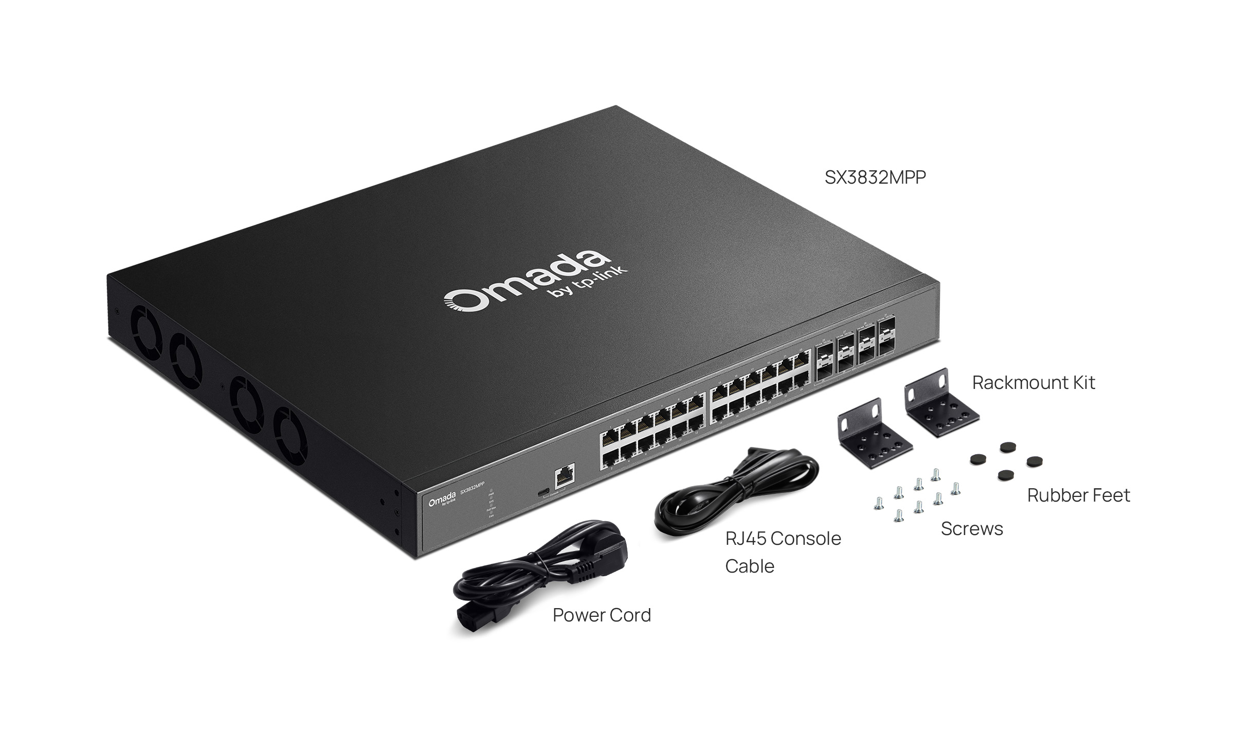 | Package Content | • SX3832MPP Switch• Power Cord• RJ45 Console Cable• Quick Installation Guide• Rackmount Kit• Rubber Feet• Screws |