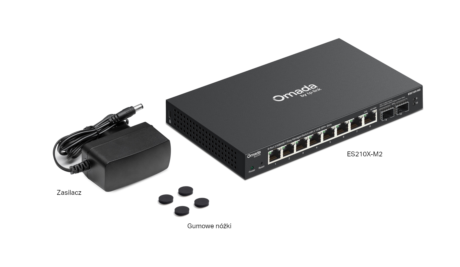 | Zawartość opakowania | • ES210X-M2 • Zasilacz • Gumowe nóżki • Instrukcja instalacji |
