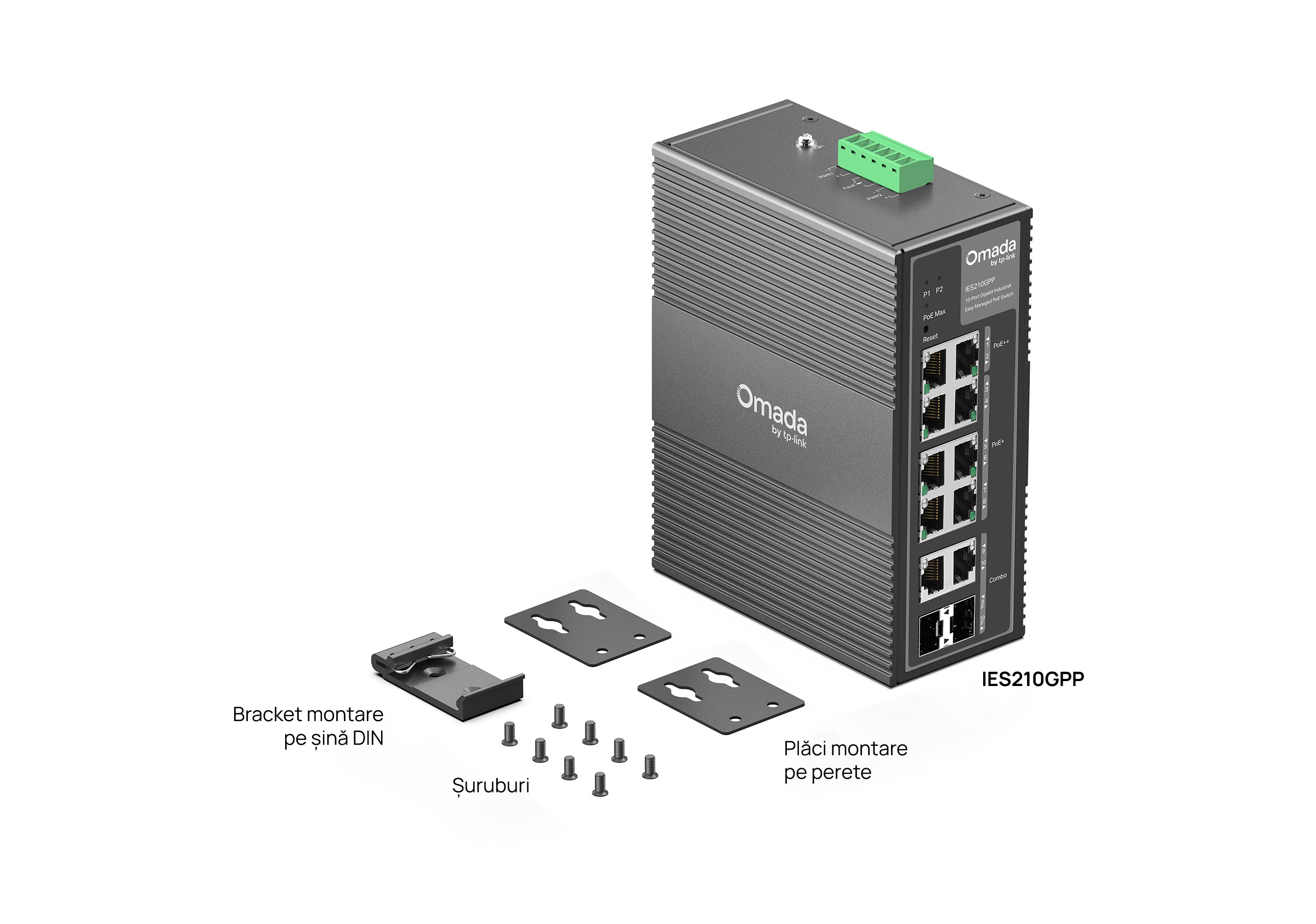 | Conținut Pachet | • IES210GPP• DIN-Rail Mounting Bracket• Wall-Mounting Plates• Installation Guide |