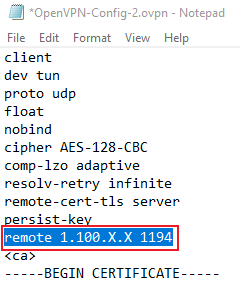 Đối với OpenVPN, trước khi nhập tệp cấu hình OpenVPN vào ứng dụng OpenVPN client, bạn có thể mở tệp đó bằng trình soạn thảo văn bản và thay thế địa chỉ IP trong mục "remote" bằng địa chỉ IP WAN của bộ định tuyến chính.